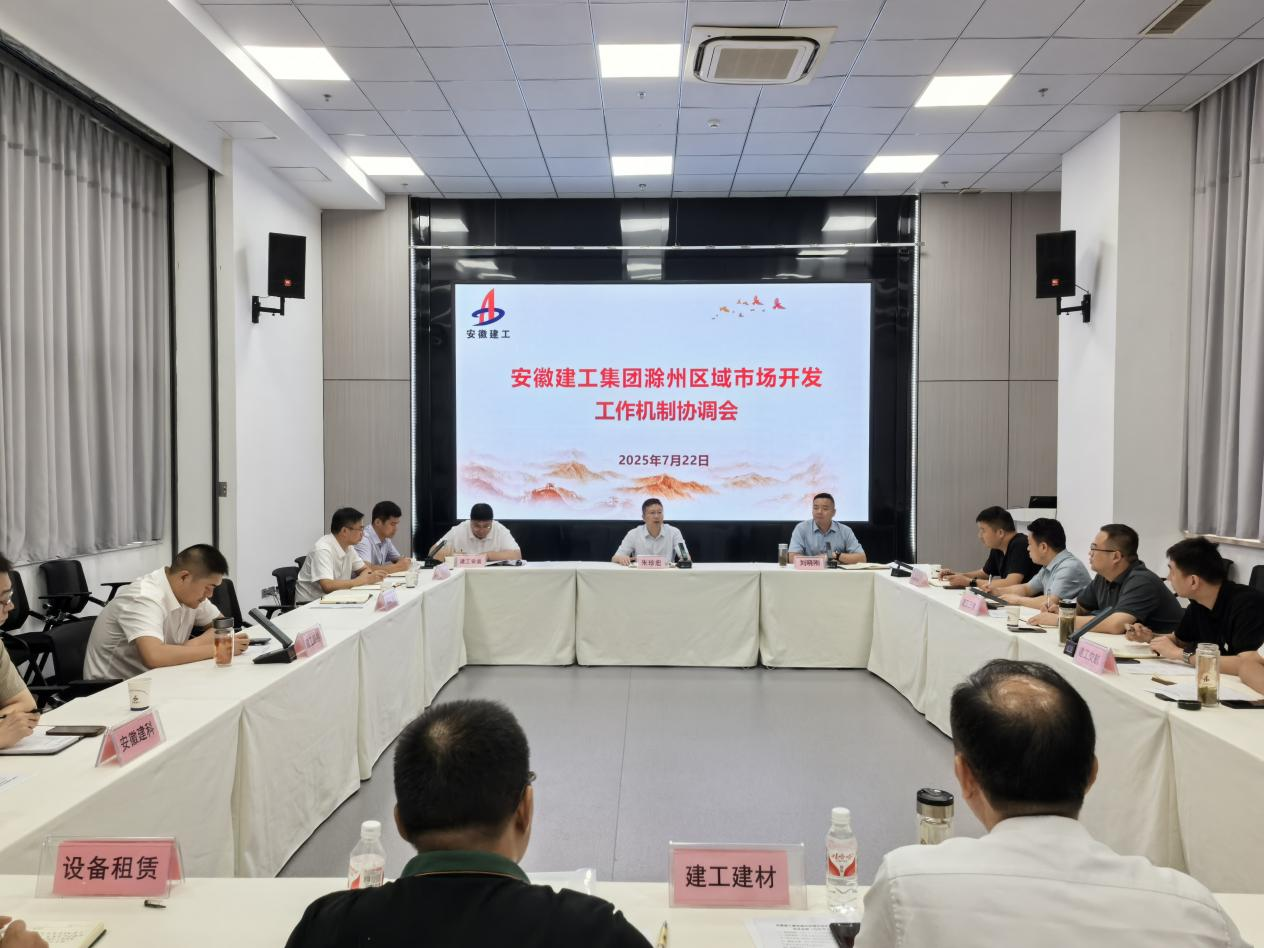 7月22日上午,安徽建工集團滁州區域2025年7月份市場開發工作機制協調會在建工安裝第一會議室召開。建工安裝黨委書記、董事長朱珍宏出席會議,會議由建工安裝市場開發和投資部許杰主持。